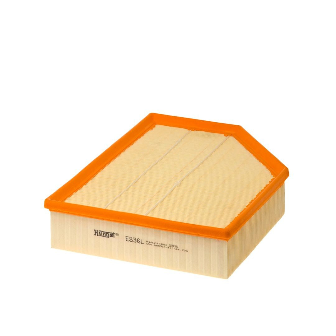 Filtro de Aire Volvo 30636551 – Hengst E836L, diseñado para alta eficiencia de filtrado y protección del sistema de admisión.